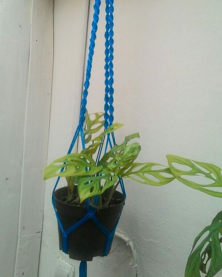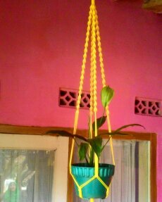 Bosan dengan gantungan pot yang biasa-biasa saja, kini ada Gantungan Pot cantik dari tali kur warna-warni, dianyam dengan sedemikian rupa, dihiasi dengan manik-manik yang kian mempercantik gantungan pot, juga menggunakan bahan tali kur berkualitas baik, yang mampu menampung beban pot hingga 10kg.